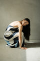 El azul marino profundo se combina con un estampado en tonos blanco y azul que aparece con discreción, evocando la serenidad del cielo nocturno que inspira la colección Sunset Loving.