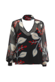 Flowy blouse with a high neck and V-neckline and a Jardín Nocturno print.