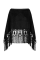 Poncho de encaje de bolillos y tejido realizado en telar artesanal, color negro.