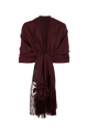 Chal de encaje de bolillos y tejido realizado en telar artesanal color burdeos.