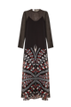 Vestido largo, cuello caja, manga pegada en gasa  de seda semitransparente con estampado Dark Orquídea.
