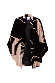 Long dress, crew neck, set-in sleeves in semi-transparent silk chiffon with Dark Orquídea print.Lining, separate underdress with V-neck and straps in satin black.